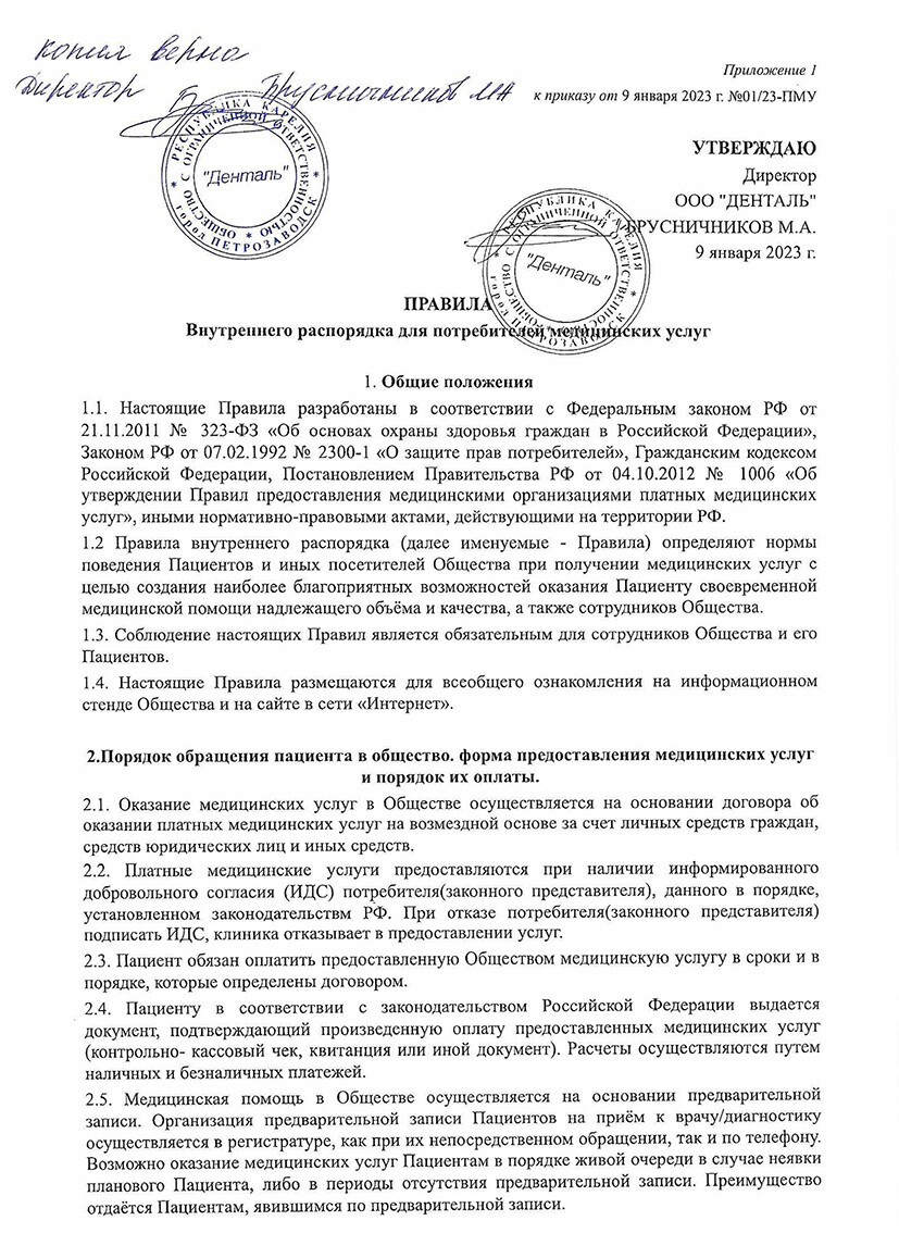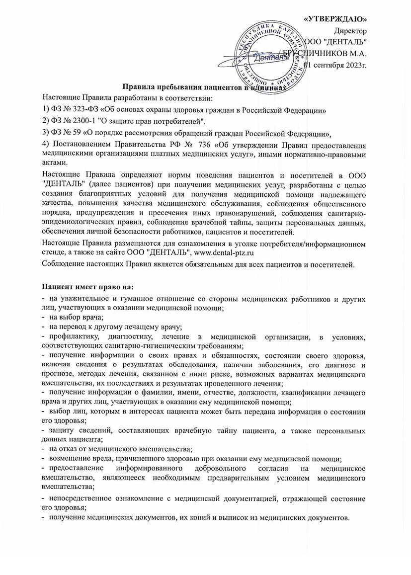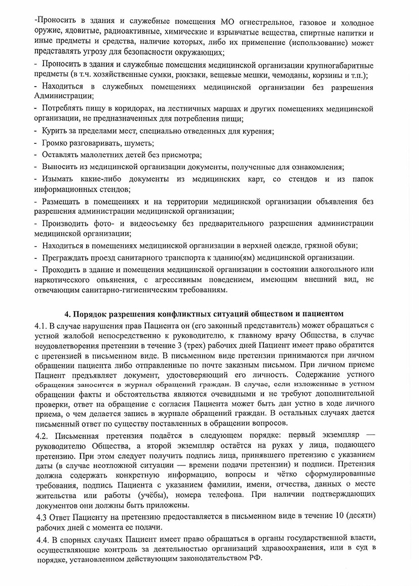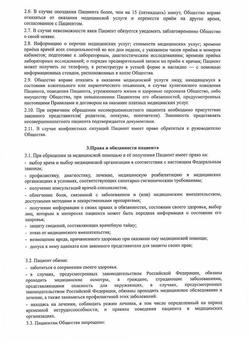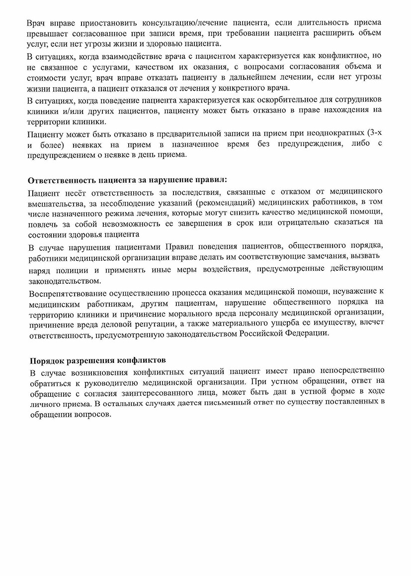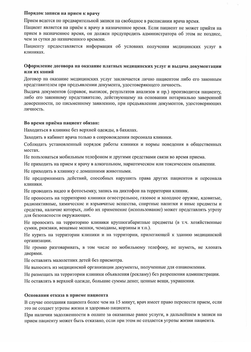 Правила внутреннего распорядка для потребителей медицинских услуг